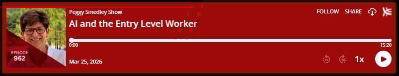 Peggy talks about how AI (artificial intelligence) is reshaping organizations, particularly the role of entry-level workers. She says every major technological shift—the Industrial Revolution, the computer revolution, and now AI—has changed how work is done.