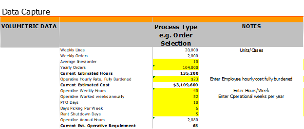 The objective here was to determine how many direct labor workers are necessary to complete the work annually using the current technology. This is your headcount baseline for the determination of the benefit the proposed innovative technology will potentially bring for direct labor cost reduction annually.