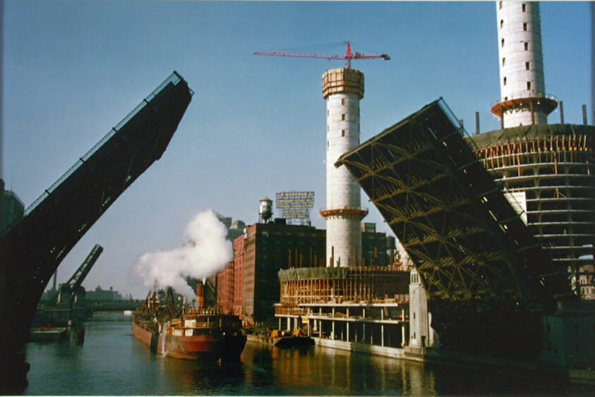 Tower cranes were employed in Europe after World War II as buildings damaged or destroyed in the conflict were rebuilt or replaced. Even today, European cities are like forests with cranes rising above the skyline. In 1961, Chicago’s Marina City was the first building in the United States to be constructed with a tower crane, from Linden now part of Comansa, and it started a U.S. boom in its use.